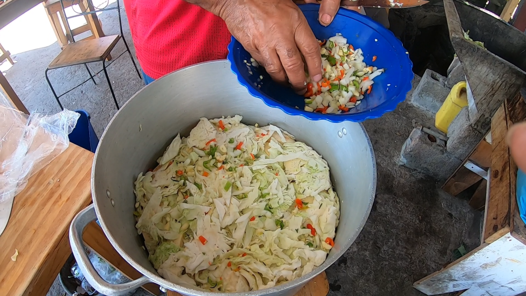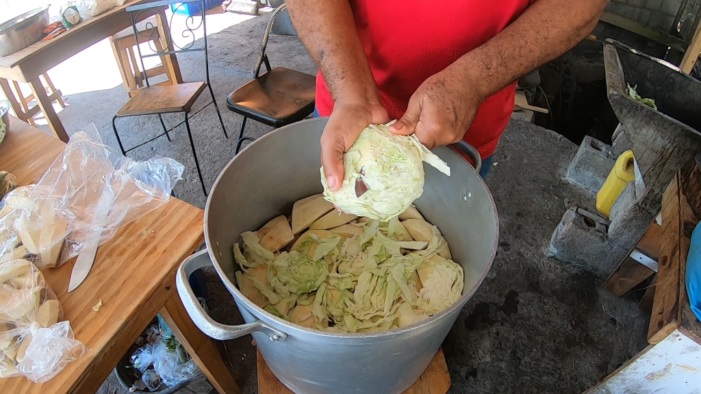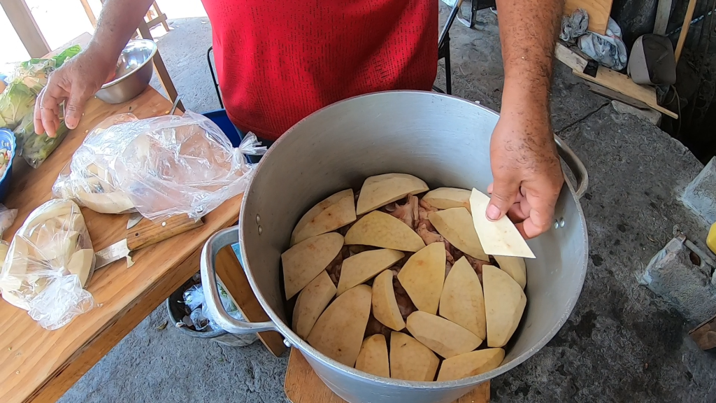 Inside the huge pot for the meat oildown | Watch The You Tube Vlog Here!