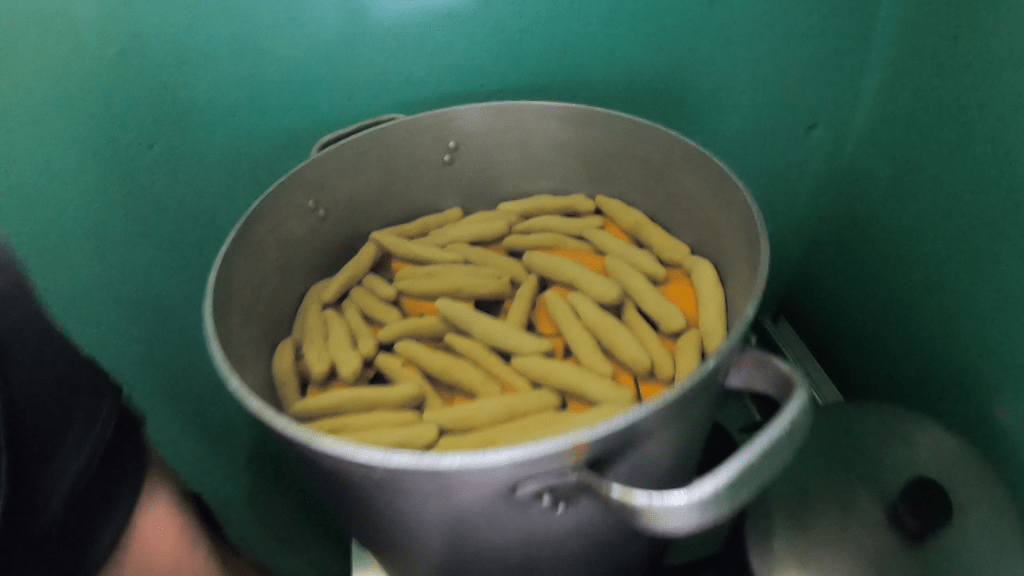 the smaller pot was for the fish oildown which had breadfruit already prepared by Curtis | Watch The You Tube Vlog Here!