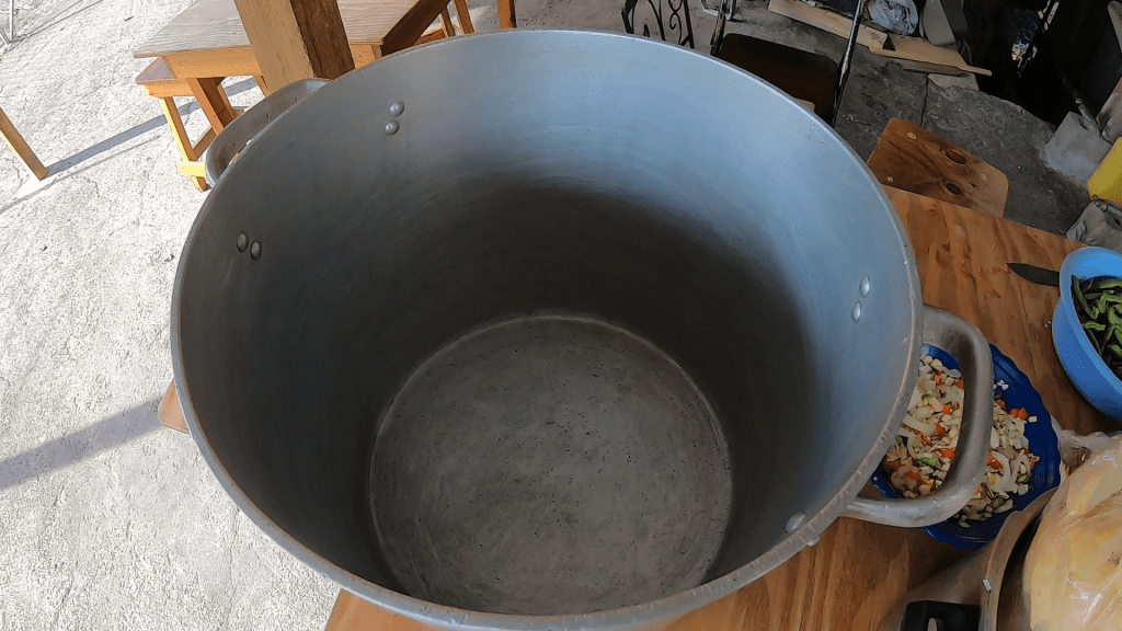 The huge pot for the meat oildown | Watch The You Tube Vlog Here!
